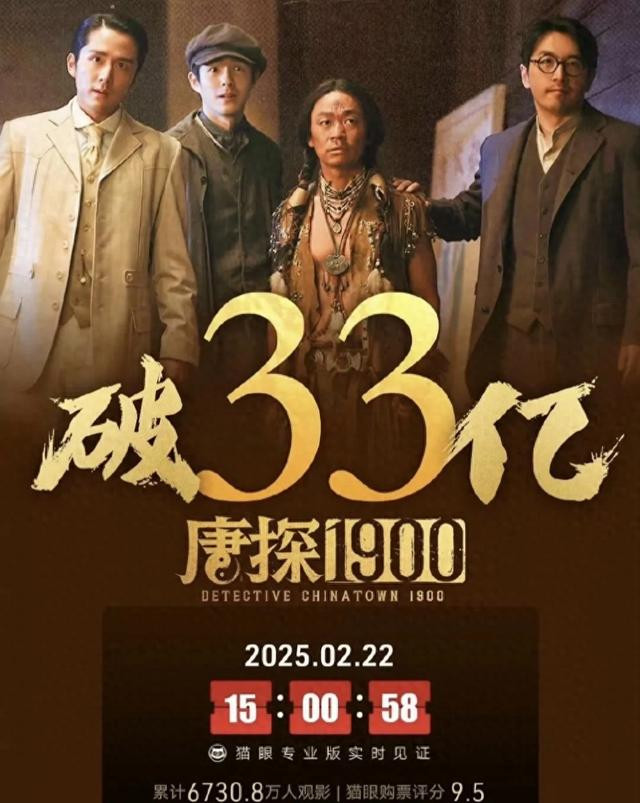 春节档硝烟渐散,但《唐探1900》的热度却持续攀升!据猫眼专业版数据,截至2月22日下午2点55分,上映25天的《唐探1900》总票房成功突破33亿大关,强势跻身中国影史票房榜前20名!6730.9万名观众用实际行动表达了对这部电影的喜爱和支持。